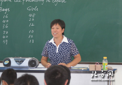 北方网消息(记者赵晶):还没上课,就见新华中学英语教研组组长王素明老师已经开始在黑板上工整地写起了板书。“我先做一下课前准备,节省同学们的时间。”王老师说。这节课的内容是:说说你最喜欢的老师。
