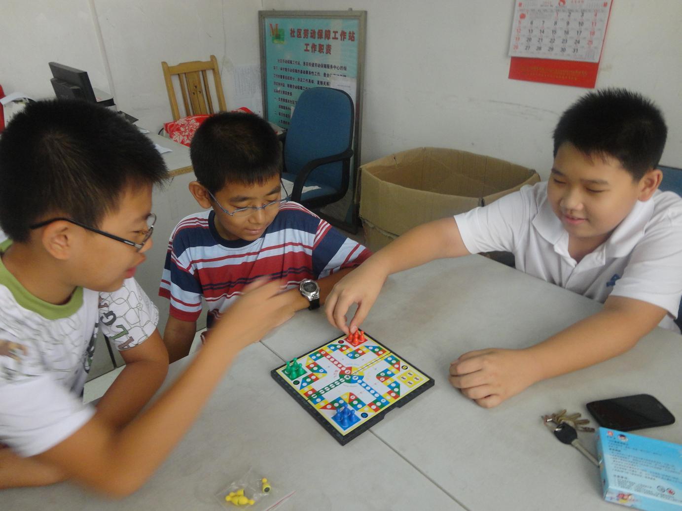 今日龙潭路居委会组织了10余个孩子在社区举办了“快乐营地”的活动,活动中在社区工作人员的指导下按照年龄、爱好分组活动,他们有的专心致志地玩着智力魔方,有的正在“对阵”军棋、象棋,也有的孩子三五成群地打着乒乓球和桌球。家长们表示,居委会举办的“快乐营地”活动,为孩子们提供宽敞的活动场地。社区还设立了专职辅导员为青少年进行假期辅导教育,既充实了孩子们的假期活动,又保证了安全。龙潭路社区“快乐营地”组织开展了一系列活动,丰富青少年暑期活动。在“我读书诵读经典,以读养德”读书交流活动,大家挑选自己喜爱的书籍进行阅读。在“棋艺大比拼”活动中,社区准备了飞行棋、跳棋、五子棋,鼓励孩子们互相切磋棋艺,开发智力。