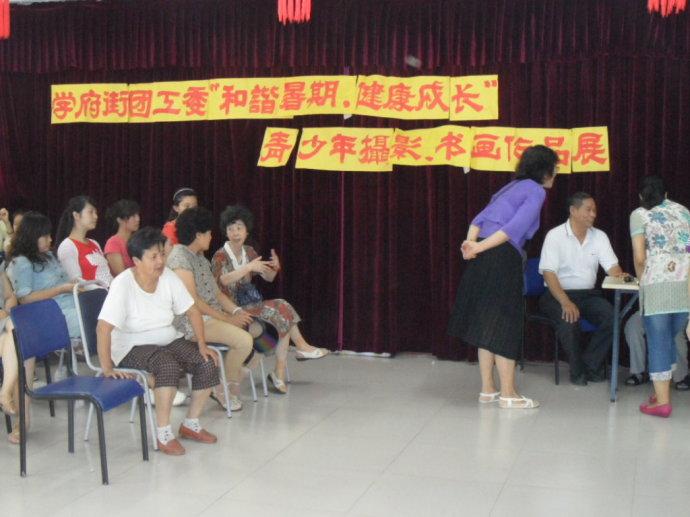 8月9日学府街团工委在我社区举办了“和谐暑期、健康成长”青少年摄影书画作品展。高书记及新园村著名的老书法家都来参加了此次活动。这次活动也有许多青少年参加,并与作者有深入的交流,最后高书记等也为作者提子,并对作者的作品给予肯定。