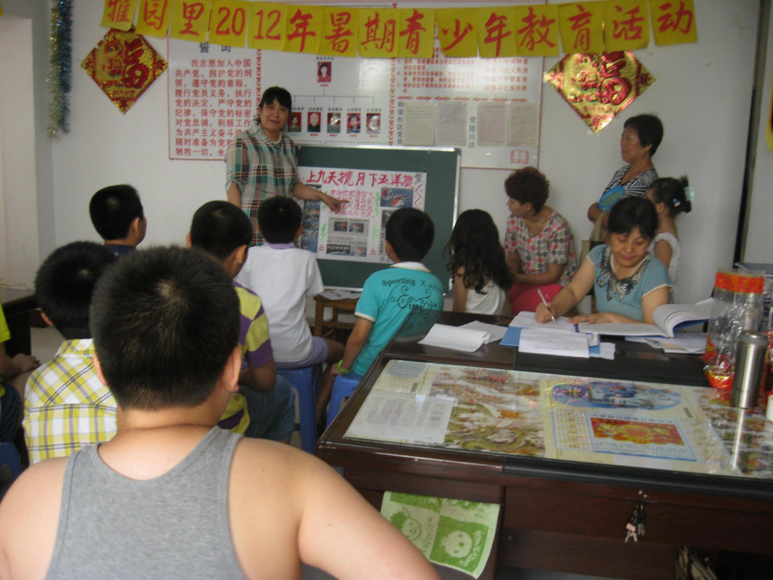雅园里社区开展丰富多彩的教育活动。唐老师讲授指导部分同学制作的反映祖国神九飞船与天宫一号对接和蛟龙7020米深海试潜成功的版报,配合励志教育的内容唐老师教育学生要树立远大理想,好好学习将来为祖国的科学事业贡献自己的知识和才华!