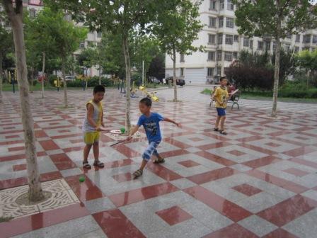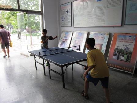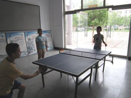 营地里,一群孩子正在兵乓球台旁边拼的你死我活。