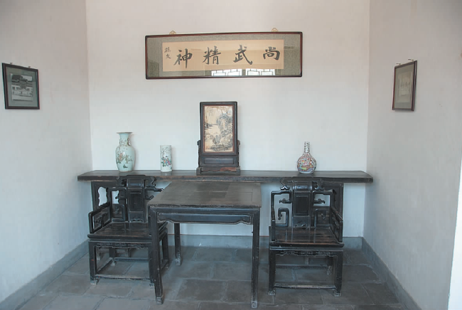 霍元甲故居位于西青区小南河镇小南河村,始建于清同治初年,是一座青砖瓦顶的农家小院。1986年西青区人民政府整修了霍元甲故居、修建了霍元甲陵园,用以纪念霍元甲这位名震中外的爱阵!武术家。1991年,故居被列为天津市重点文物保护单位。1997再次修葺了霍元甲故居,扩建了霍元甲陵园,辟为“霍元甲故居纪念馆”。纪念馆由霍元甲故居和霍元甲陵园两部分组成。故居坐北朝南,为小三合院式清代民宅建筑,正面是一明四暗五间正房,东、西各有厢房一间,中间堂屋内挂着霍元甲的遗像。遗像两侧挂着霍东阁在霍元甲遇害后所写的唁联:一生侠义,盖世英雄。西屋是霍元甲生前书房,墙壁上挂着孙中山先生为精武体育会的题词:“尚武精神”。东屋是霍元甲卧室。故居内还陈列着霍元甲练武时用过的石锁、石墩、刀剑、七节鞭等兵器,以及精武体育会的会旗、会章、会员证书等珍贵文物。